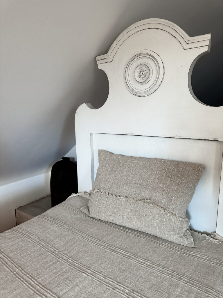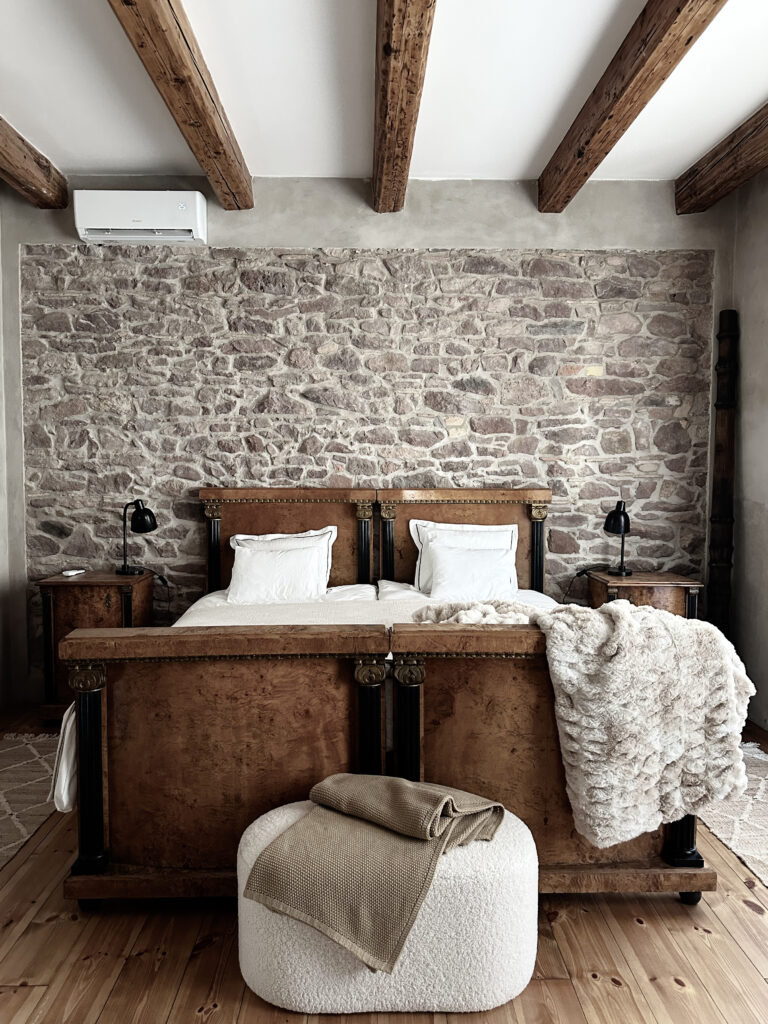 Az nem volt kérdés, hogy a gyönyörű kőfalak belülről láthatóak legyenek, ez alapvetően onnan jött, hogy a valamikori padlás oromfala így volt hagyva és ezt mindenképp szerettük volna megtartani és élvezni, sőt a nappaliban, a folyosón és a hálószobában is kértem a kőműveseket, hogy verjék vissza a vakolatot, annyira tetszett nekünk. Ez egyébként lutri volt, mert nem lehetett tudni, hogy néz majd ki, de szerencsere annak idejen gyönyörűen rakták a falakat, legnagyobb örömünkre.