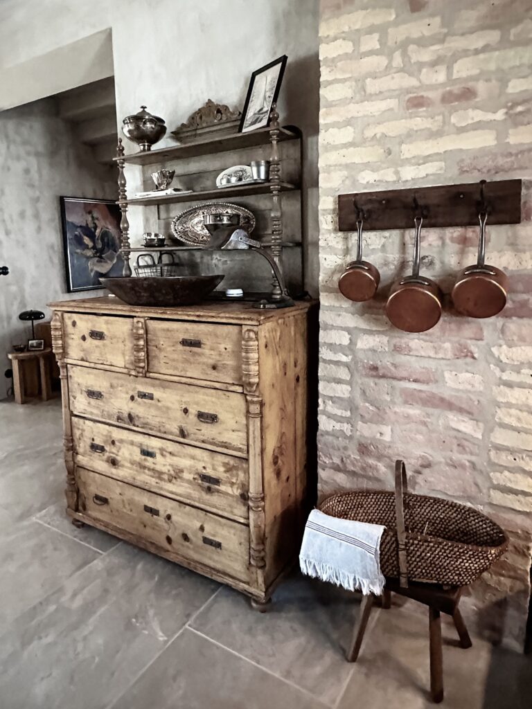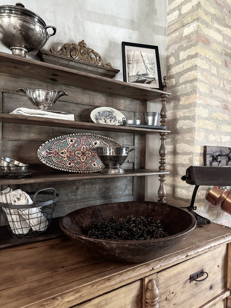 Nagyon sok kedvenc darabom van, tulajdonképpen mindegyik az, mert ha rájuk nézek, eszembe jut a “vadászatunk”, az a sok munka, amit belefektettünk az egész építkezésbe, emlékszem, melyik fázisban, honnan és hogy került hozzánk, de ha csak egyet említhetek, akkor az a nagy fa tál, amit Tőled vettem, a tökéletlen tökéletességé, a megmunkálása. Nem tudom, eredetileg mire készülhetett, de csodás darab és egyből tudtam, hogy helye lesz nálunk.